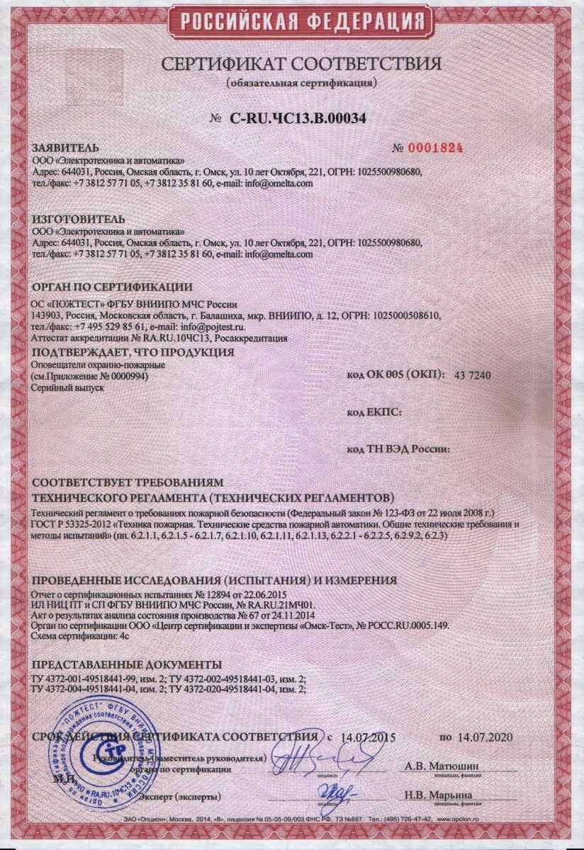 - Тип исполнения: внутренний